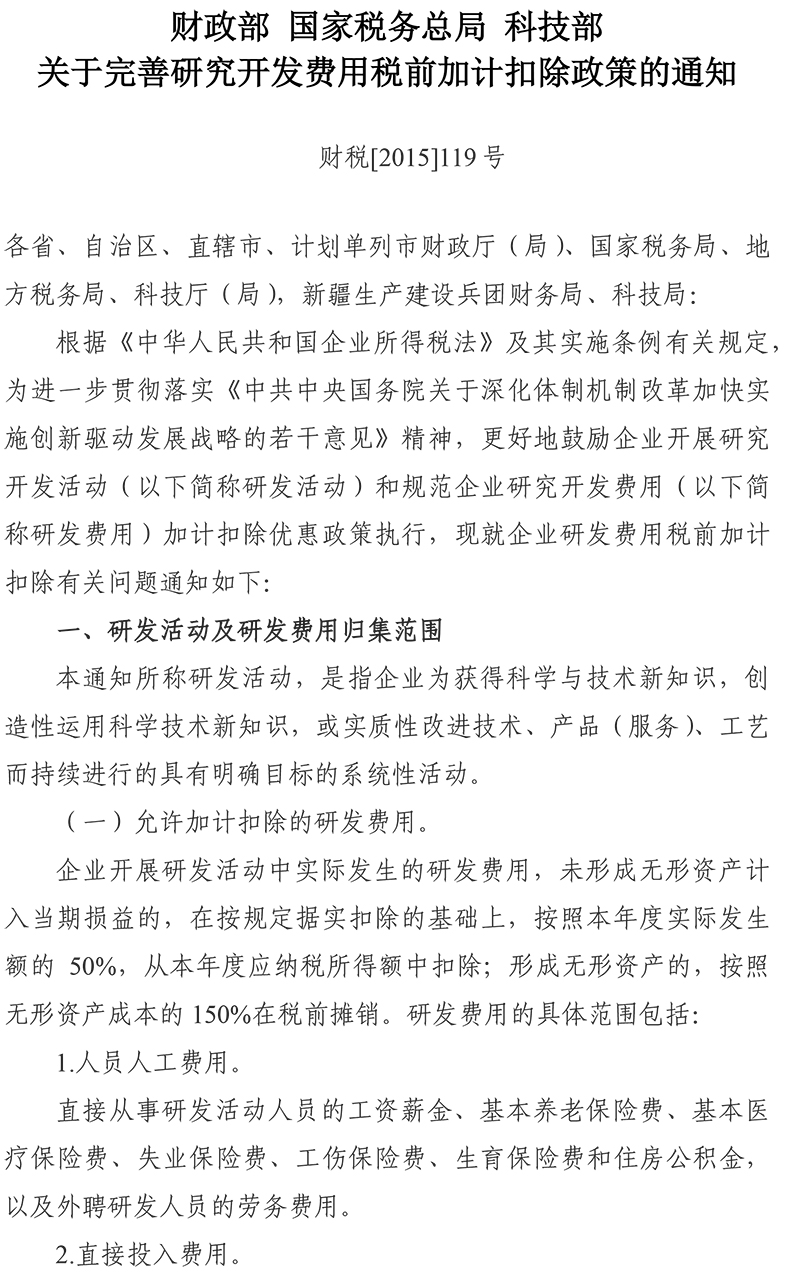 研究開(kāi)發(fā)費用稅前加計扣除政策
